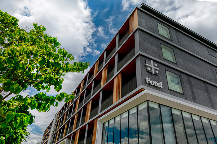 梅小路ポテル京都(Umekoji Potel KYOTO)は、株式会社JR西日本ホロニック(設立:2017年9月29日)が運営する宿泊施設。2020年10月14日に開業し、144室を擁しながら銭湯・飲食・共用スペース等を備え、観光客だけでなくビジネス利用や地域住民にも開かれた“滞在の余白”を提供している。